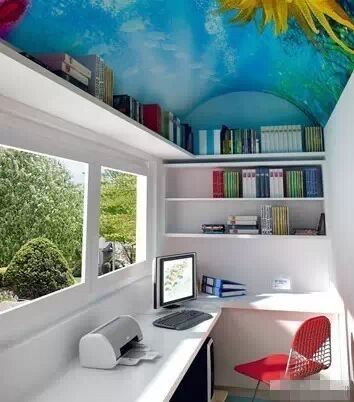 阳台改造的小书房,蓝色的天空,绿色的心情。