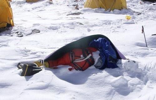 很多死亡往往发生在攀登者的一个“小憩”当中。大多数的尸体都是即刻冻住的,登山的绳子还缠在腰间。