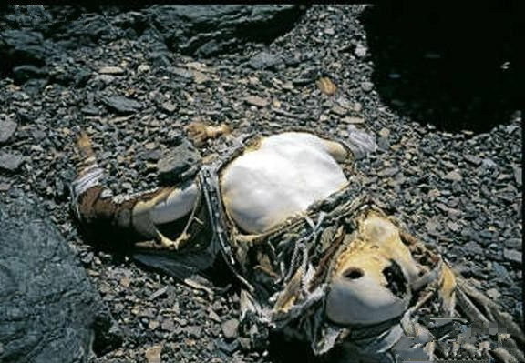 马洛里的尸体已“革化”,这是因为长期埋在冰雪下,没有因细菌而腐烂,但身体里的水分被蒸发后,就变成我们现在使用的各种动物的皮革一样了。这个位置离1933年在第一台阶附近发现欧文的冰镐不远。