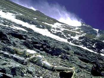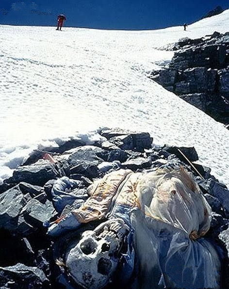 在珠峰上掩埋一具尸体是几乎不可能的事情,只能任其风化分解成骷髅。