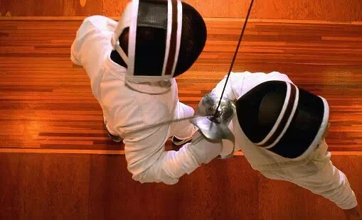 现场PK:两位专业教练进行表演实战,现场为大家进行专业击剑表演展示。