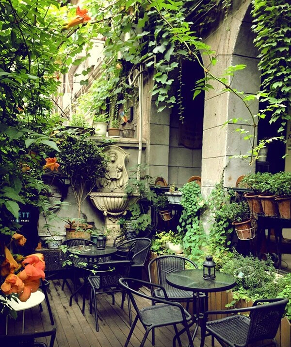 绕到老租界里的小咖啡馆里避雨