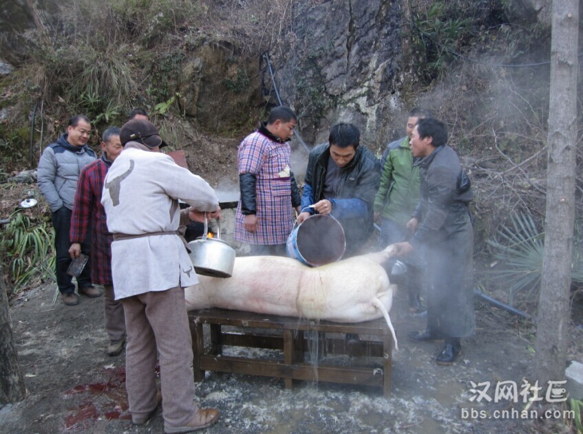 腊月,年味浓,而最吸引我们的当属杀年猪。肥硕的猪猪养了一年,腊月廿六那天,牵出来,大人们充当血腥的刽子手,孩子们在一旁看热闹,在猪猪嗷嗷的嚎叫声中,一顿肥美的血肠就开始了,而且猪肉的香味一直伴随我们整个冬天。