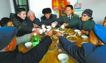 当然,过年的重点还是吃好几餐饭。首先是腊月二十四的小年饭,这一餐丰盛程度也仅仅逊于“年饭”了。这一餐饭开始吃前,会“接老人”(这些老人都是已经过世的长辈)、放鞭、敬三巡酒、磕头一样都不能少,真正的“年”也就开始了。