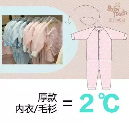 每件衣服能增加的温度:厚羽绒服9℃,薄款羽绒服6℃,稍厚弹力絮棉衣5℃,厚羊毛衫4℃,棉背心4℃,抓绒衣服3℃,薄外套3℃,厚棉毛衫2℃,薄棉毛衫是1℃。有了这个穿衣法,妈妈再也不担心我感冒拉!