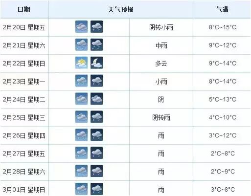 根据湖北武汉天气预测,2015年春节期间,武汉的天气大概会呈现如下变化