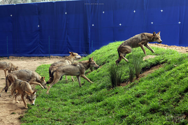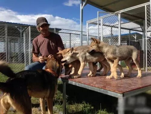 影片中出现了17匹狼,是他们分三批从各地动物园凑齐的,要等着它们长到同等大小,还要让它们听指挥能跑到指定位置,这个过程历时三年。要提一下加拿大驯兽师安德鲁.辛普森,他2002年就看过英文版的《狼图腾》,当时他就觉得有一天会有人来找他加入,这一天等了7年。他带了6名助手过来,所以这17匹狼都是听英文口令的。他对训狼的总结就是狼不能打也不能惩罚,只能无限地对它们好,给足牛腿肉,才能消除人与兽之间的隔阂,他让演员没事就去狼舍里坐会,不干什么,就是建立信任。