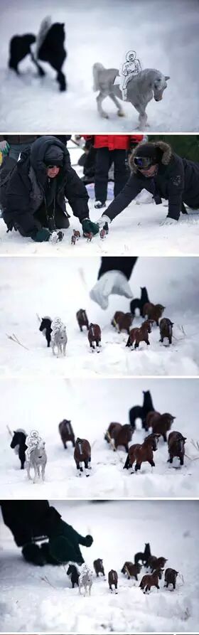 再举一个例子说明诚意,影片中需要一个雪景,但是他们在草原上等了两个月都没下雪,这在当地50年未遇,剧组不想用人造雪,因为化学药剂会破坏草原,这与影片宣扬的环保精神有悖,所以他们从一千四百公里外的长白山拉来20卡车雪,用3天时间铺了两万多平方米。遇到困难时,有些人选择捷径,比如电脑特技什么的,但是有些人就是死磕。