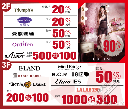 蜜衣专刊 超强阵容联合内衣展 高烧派对2月27日开启!美 芝 婷: 全场3折,曼 妮 芬:全场2.5折-4.5折,莱特妮丝:全场3-4折,古 今:全场1-5折,桑 扶 兰:全场1-4折,丝 芝:全场2-4折,猫 人:全场3.8折-4.5折