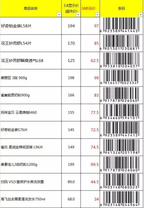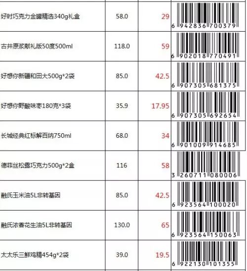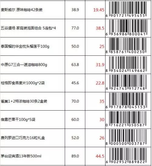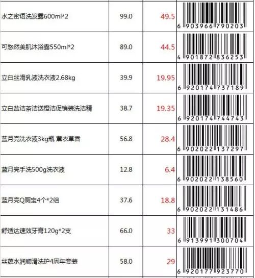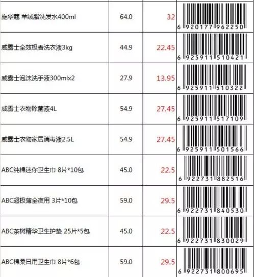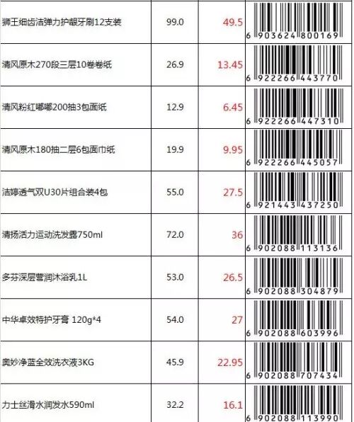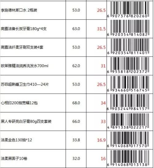 分享下最全优惠商品条形码,只要能扫到绝对赚到: