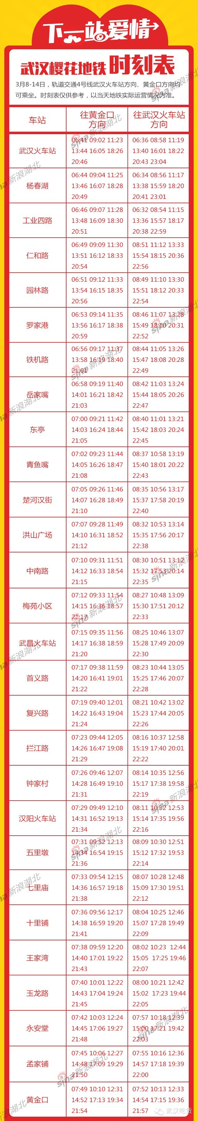 目前此专列目前只有一辆列车,每天定时出没在武汉地铁及轻轨系统中,大家就随缘吧!如果你是专程去乘坐,速度收藏下面的时刻表吧: