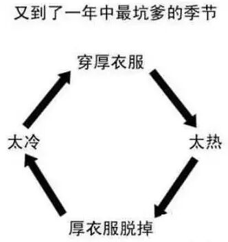 所以武汉人最近一直忙一件事:穿袄子,脱袄子,洗袄子,收袄子,找袄子,穿袄子,脱袄子,洗袄子,收袄子,穿袄子……哎!看了天气预报,明天还得穿袄子。武汉这两天的天气用一段话形容就是:路上,一个穿夹克的和一个穿袄子的擦肩而过,相互瞄了一眼,然后各自心里默念了句:像尼玛个苕!