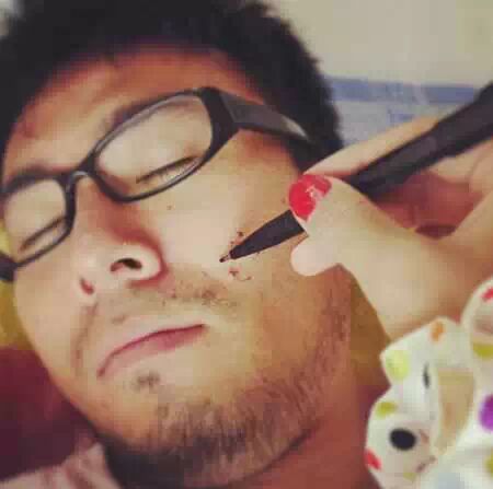 这类场景的难点在于,怎么让露出来的手像女朋友的手?所以就要用到粉底和指甲油了!