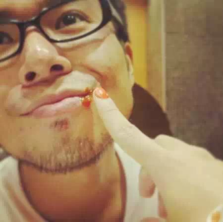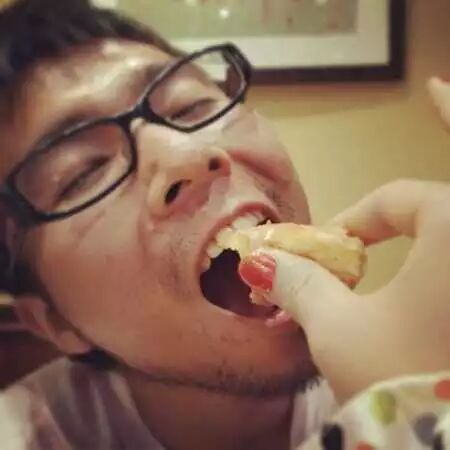 并且女朋友还会体贴/甜蜜地擦掉嘴边的食物