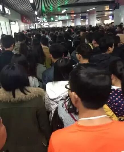 昨天下午街道口地铁站和光谷地铁站跟春运返乡一样,放眼望去全是人头,地铁上就跟蒸桑拿似的。想拍个照手都没办法抬起来……