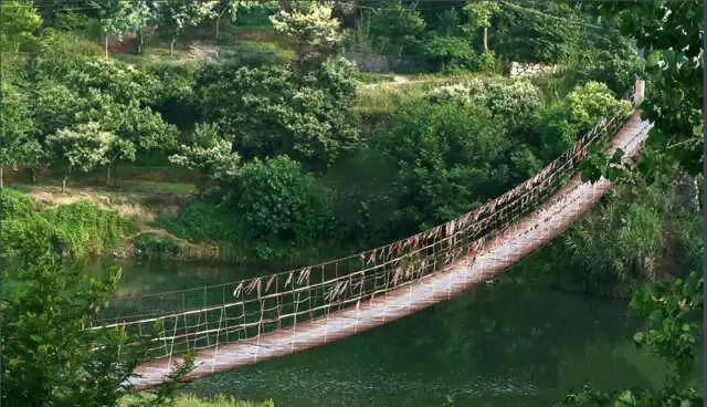 高庙铁索桥,座落于湖北省罗田县大河岸镇高庙村七组境内义水河上游,建成于1988年八月中秋,全长120米,是由两百多块钢板组成的铁索吊桥。