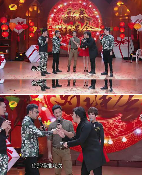 2012-2013年湖南跨年晚会,刘德华压轴演出,中间有全体主持人上台跟刘德华互动,何炅先开口,很习惯性滴说一些恭维刘德华的话,汪涵那头刚要说话,何炅就拍了刘德华后背一下,把汪涵的话抢了回去。