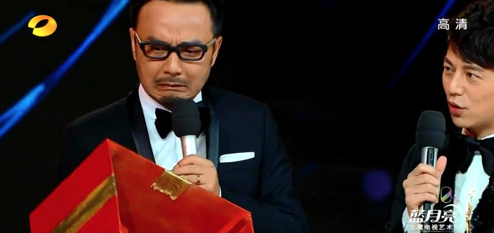 汪涵是最后一个,盒子里是空的,打开盒子后汪涵的表情是这样的。