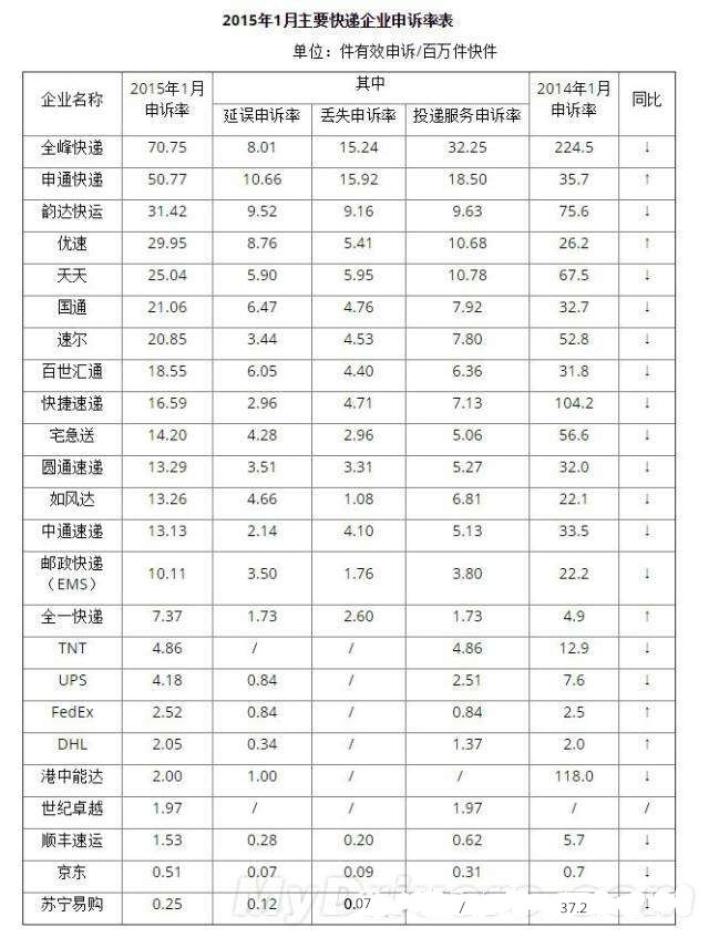 3月27日,国家邮政局公布了最新的快递业消费者申诉情况通告——24家快递企业遭遇消费者的申诉。快件延误成为消费者申诉第一重头,丢失以及内件短少排位第二,第三位是快件损毁。