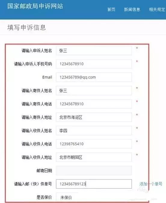 现在就进入了重头戏,将申诉人姓名、手机号码、寄件人联系信息、收件人联系信息、快递单号、申诉内容、证据等信息如实填写,写完之后点击“提交”,投诉就完成啦。