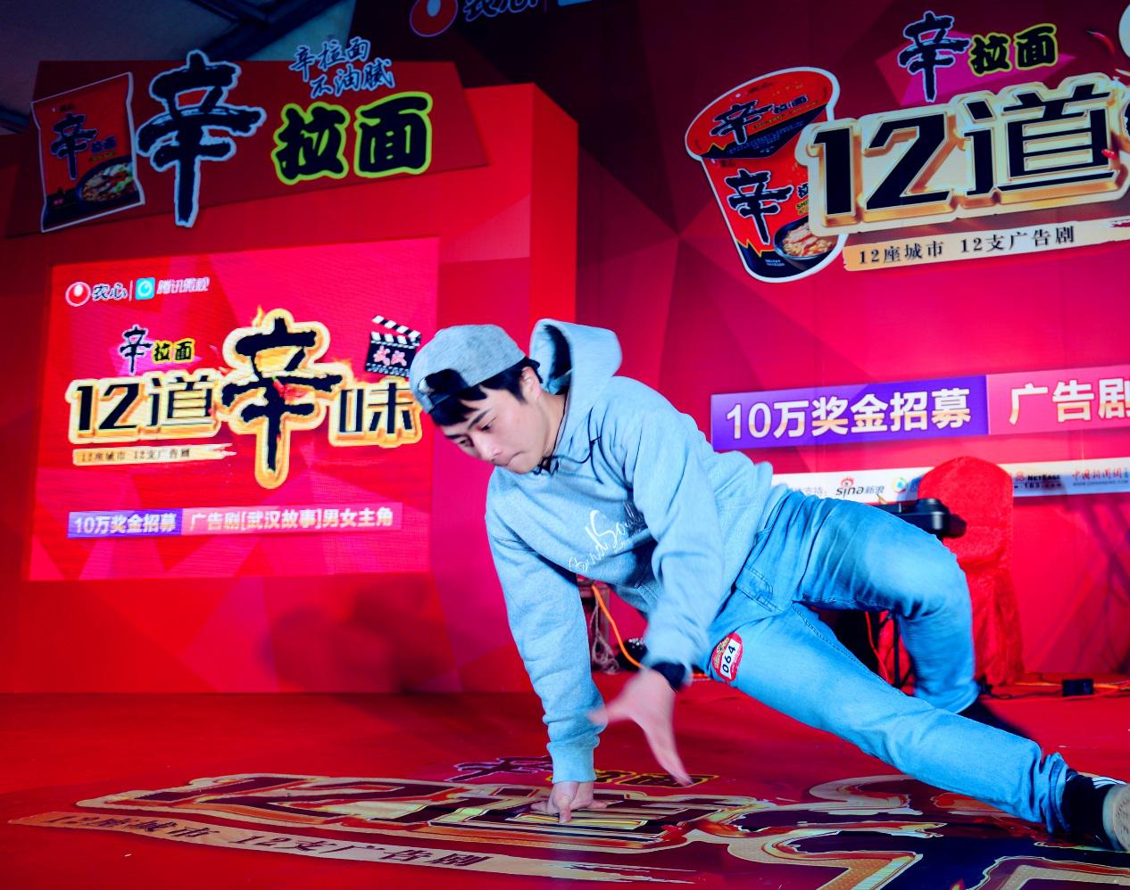 韩国独资上海农心集团作为“十二道辛味”活动的主办方,这次也与腾讯微视联合,继成都之后,在武汉寻找符合辛拉面品牌形象的健康活力的男女主角。最终新晋武汉站女神凭借萨克斯演奏加热辣韩舞的完美编排赢得辛女神的称号。而辛男神则是由一位用舞蹈演绎自己学舞历程从而感动全场的男选手高典赢得。