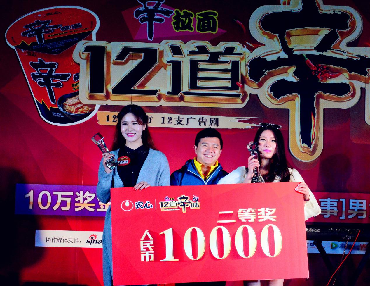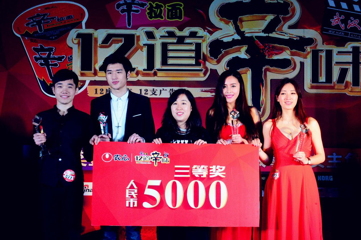 辛拉面“十二道辛味”广告剧男女主角选拔赛武汉站圆满结束啦!本次共选出一等奖男女选手各一名,二等奖两名,三等奖四名,而获得一等奖的两位选手将有机会出演辛拉面“十二道辛味”武汉故事。
