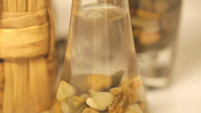 往里面扔石子,一直扔,一直扔,最后石子都满出来来啦,水也没涨上来。