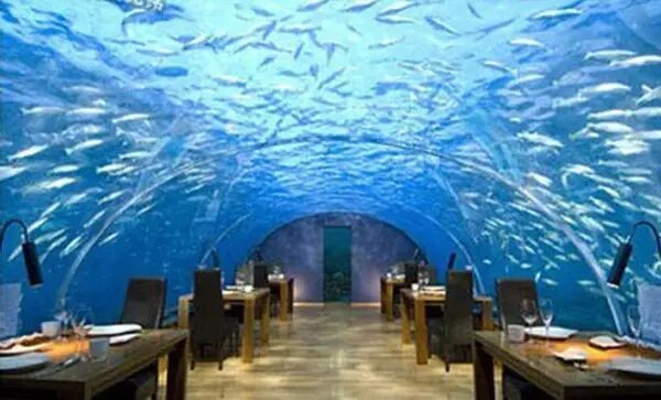 拉格利岛的全玻璃海底餐厅,让你坐享最迷人的海底景观,这里你可以一边品尝到垂涎欲滴的丰盛美食,一边欣赏蔚为壮观的海底世界,或者,你还可以在充满缤纷珊瑚礁和鱼儿的水底入眠,尽享悠闲惬意时光。