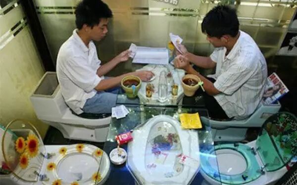 这家别具一格的餐厅是以厕所文化为主题设计而成的,顾客坐在抽水马桶上,用类似于迷你马桶的餐具食用各种美食菜肴。此外,这里还提供有类似大便形状的巧克力冰淇淋,形象逼真,令人连连称奇。值得一提的是,餐厅到处可见男女洗手间供用餐者使用,非常方便。这种让你进“厕所”用餐的感觉,你敢去吗?