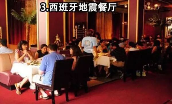 珍馐美味,再加上奇特的寓所,绝对是一次的独特体验。这家位于西班牙的地震餐馆,可以模拟7.8级地震,带给你超震撼的享受,在这里吃饭,建议做好防护措施,以防汤汤水水洒在身上啊。