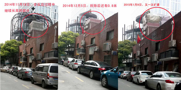 据大楚网友报料:位于江汉区新华西路736号三金鑫城国际1号商铺,属于违建。2014年11月15、16日《长江日报》已刊登违建鸟笼一事的详细经过,2014年11月18日《楚天都市报》也刊登了此处属于违建。但直到目前并未拆除完毕,只拆除了顶部来糊弄领导。更为严重的是,还新增了违建部分:1、地面新增了十根粗铁柱(为了支撑二楼的加层,不在建设工程规划许可证内,也无任何合理合法的审批手续)且整个房屋直径外扩1.6米。2、楼房升高1.6米,用玻璃封好,外面用条状布包裹。两个月来我们反映到江汉区城管。为什么不在建设工程规划许可证内的违建反复、多次重复出现在此处?为什么群众无数次的反应这个地点的违建无人管理?事出有因。我们真诚的想请领导调查此事。给我们一个公正、合理合法的说法。 (来自:大楚报料台)