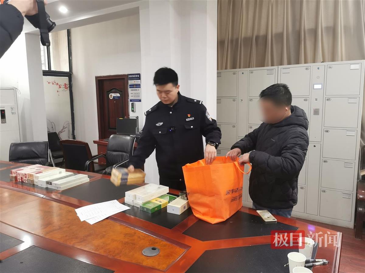 武汉市江岸区一家便利店被盗价值万余元的香烟,丹水池派出所侦破此案,追回了被盗的香烟。2月20日,店主来到派出所,领回了价值万余元的香烟。他说,发现大量香烟被盗后,立即查看了店内的监控视频,“万万没想到,小偷钻进店里,打着一把伞。”