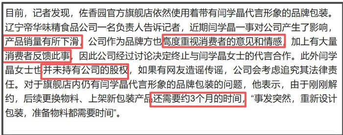 说起来,佐香园品牌负责人接受媒体采访时,还提到了为什么不下架印有闫学晶照片的产品,采访信息量不小,这里简单总结一下。