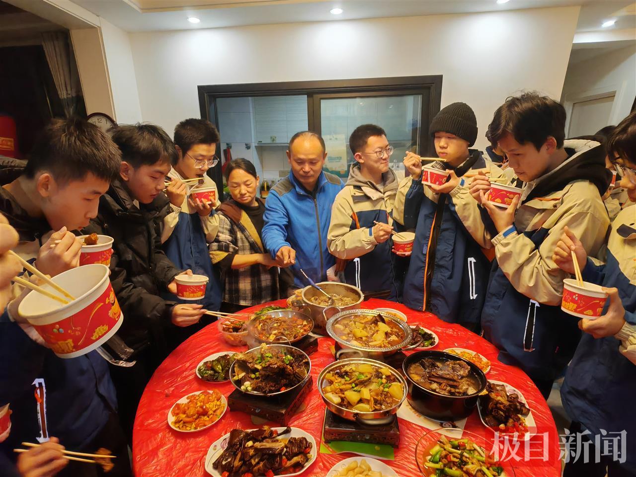 “我最爱吃程老师做的牛杂火锅,餐馆的大厨都烧不出这个味道!”1月14日晚,在湖北黄石市阳新县华成新都小区内,阳新一中高三年级主任程志勇家中挤满了26名学生,他们围在桌前,一边吃着程老师亲手做的美食,一边评论着哪个菜最好吃。老师宴请学生到家里吃饭,这种温馨的画面,在程志勇家上演了20多年。原来早在高中时期,因为家庭贫困,程志勇经常吃不饱饭,其班主任发现后,便经常邀请他到家里吃饭。那种特别的关爱,让程志勇倍感温暖,当自己当上老师后,他便暗下决定,将老师的这份“暖心饭”传递给自己的学生。