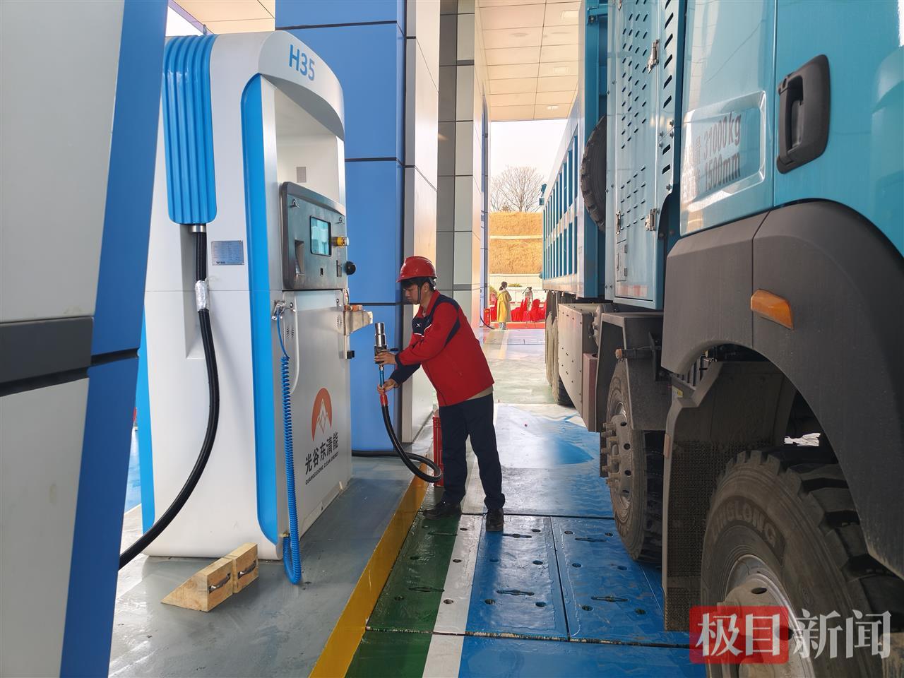 “注氢、挂枪”,伴随着员工石杰的“加好了”的吆喝声,1月15日,黄石奥体大道综合能源站为第一位客户成功注满氢气,这也预示着该站经过一年多的建设投产后,正式服务黄石市大冶湖文旅核心区广大客户。