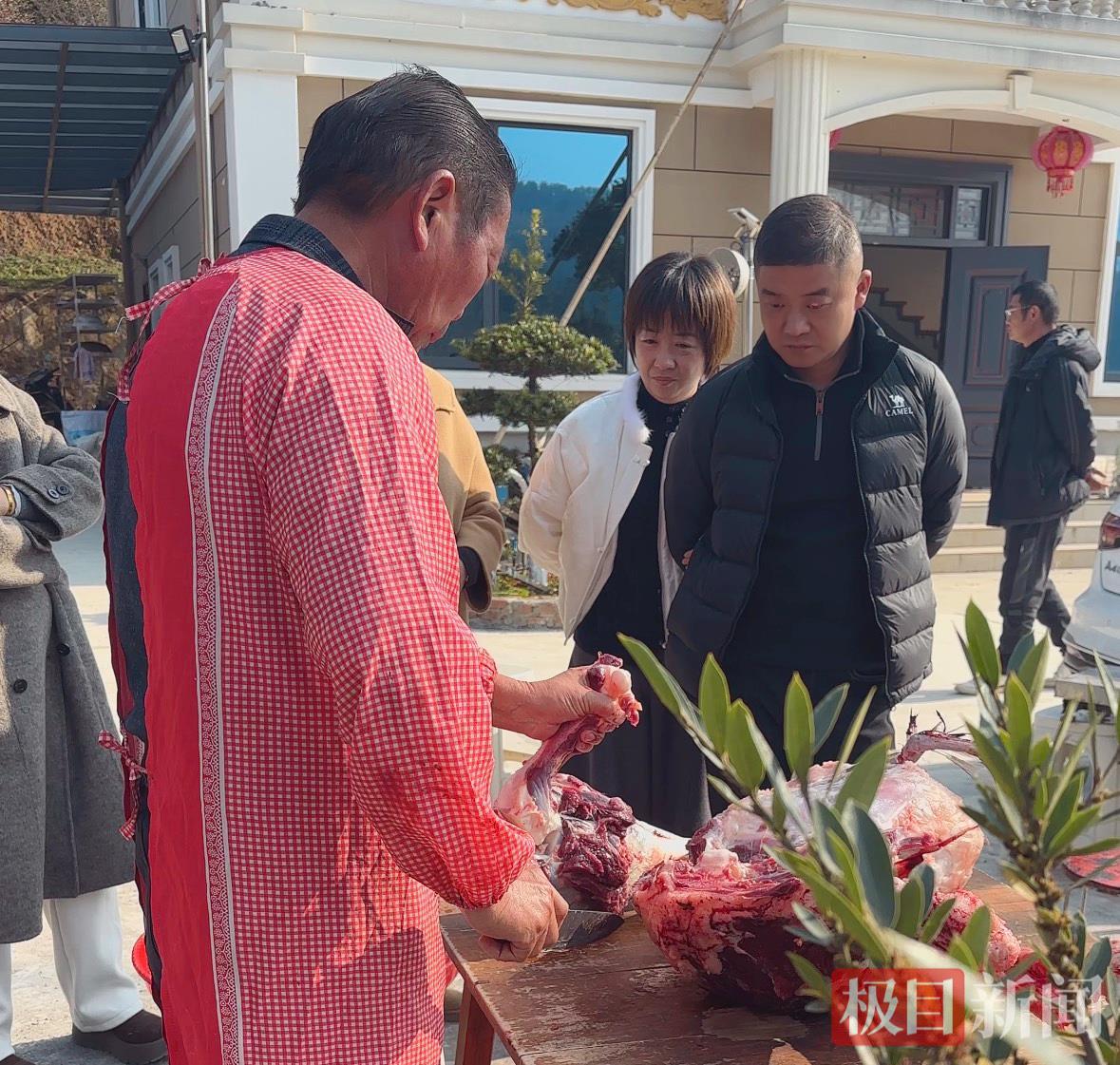 中午时分,“鸸鹋宴”开席,大骨火锅、爆炒肉片,搭配着此前刚杀的年猪,20多人大快朵颐,一些网友尝过之后还买了不少。