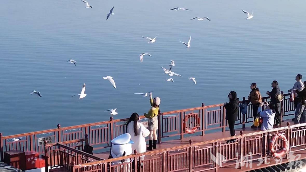 湖北日报讯(记者冯袁玥、通讯员钟珊)近日,据武汉观鸟协会观测,飞抵武汉东湖越冬的西伯利亚红嘴鸥数量接近500只,达到峰值。随着游船缓缓驶离楚风园码头,这些“白色精灵”应声而起,舒展双翼追逐船尾浪花,红喙在暖阳中熠熠生辉,东湖随之迎来了红嘴鸥的最佳观赏期。