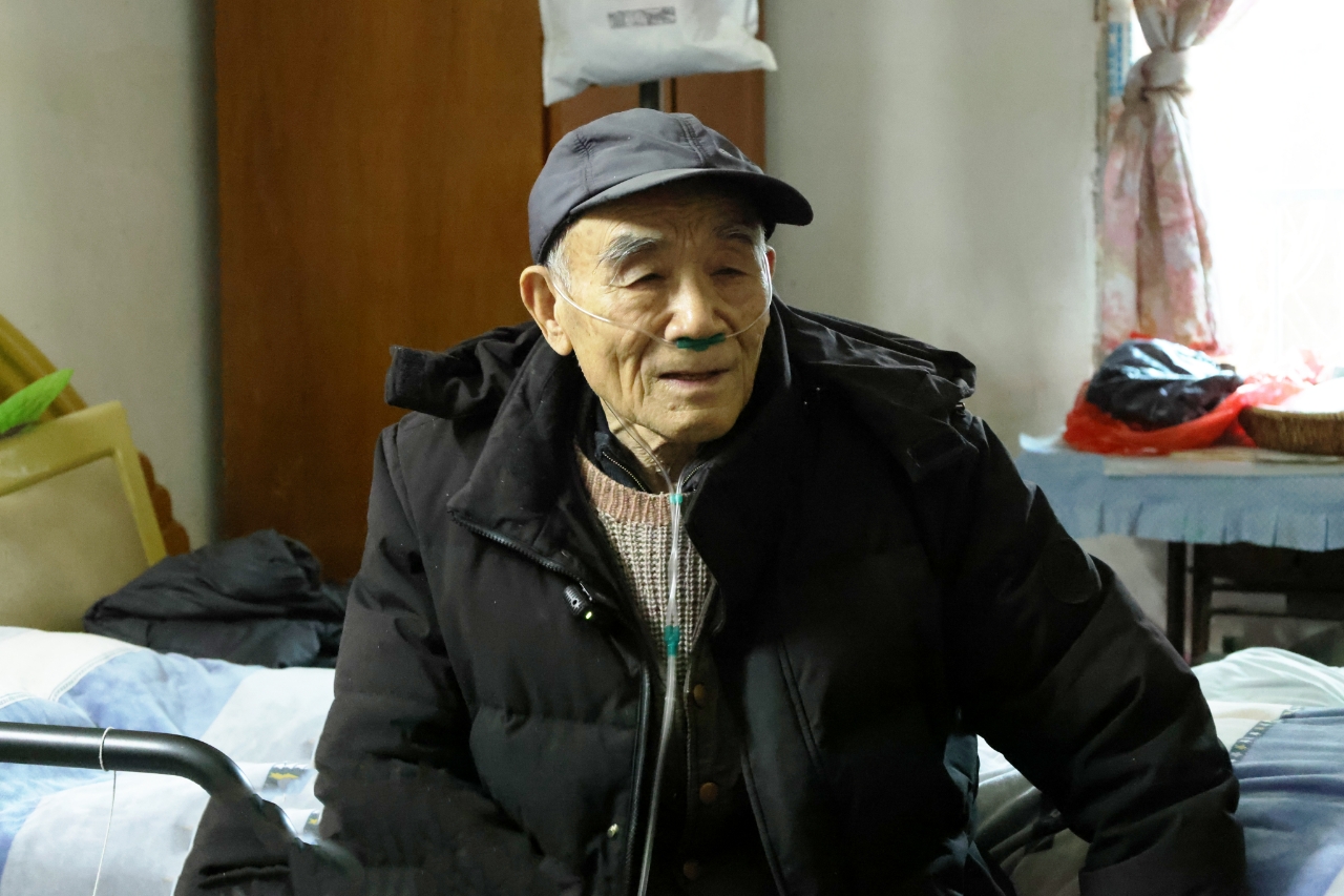 “期盼台湾早日回归,期盼祖国早日统一!”镜头前,纪春田老人取下吸氧管,一字一顿地说。