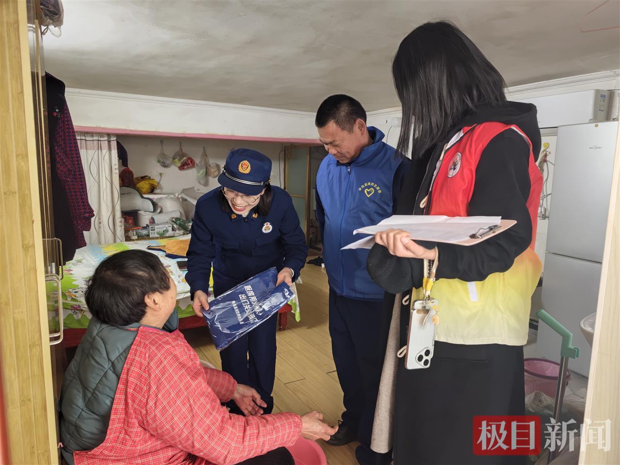 在独居的张阿姨家,看到电暖器上覆盖着烘烤的衣物,他们一边协助整理,一边耐心解释此类行为的安全风险。