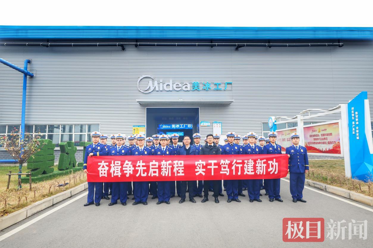 2025年1月14日,荆州支队又将课堂搬到美的冰箱荆州“灯塔工厂”,为实景课堂换上“科技皮肤”:80%自动化率的钣金生产线飞速运转,AGV搬运机器人贴着脚尖穿梭,巨型屏幕上每秒“跳跃”一台冰箱的生产数据。工程师把数控加工“毫米级精度”与消防“秒级出警”类比:“设备讲究0.01毫米,我们讲究0.1秒——本质都是把简单动作做到极致。”指战员们围着机器人打转,在激光定位的“嗒嗒”声里,第一次把“新质生产力”写进学习日志。