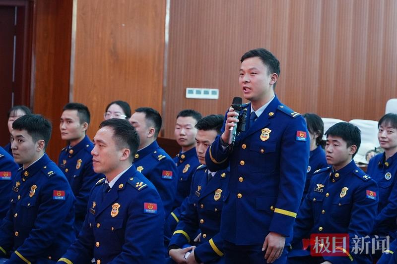 为了把榜样“听得见的感动”转化为指战员“带得走的战斗力”。宣讲结束后,支队把舞台切换成“互动模式”——50余名指战员代表与两位榜样围坐在一起,开启“蓝焰·榜样面对面”交流。