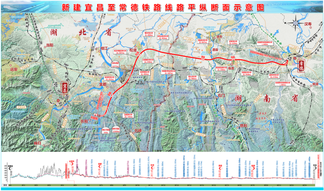 新建宜昌至常德铁路线路平纵断面示意图