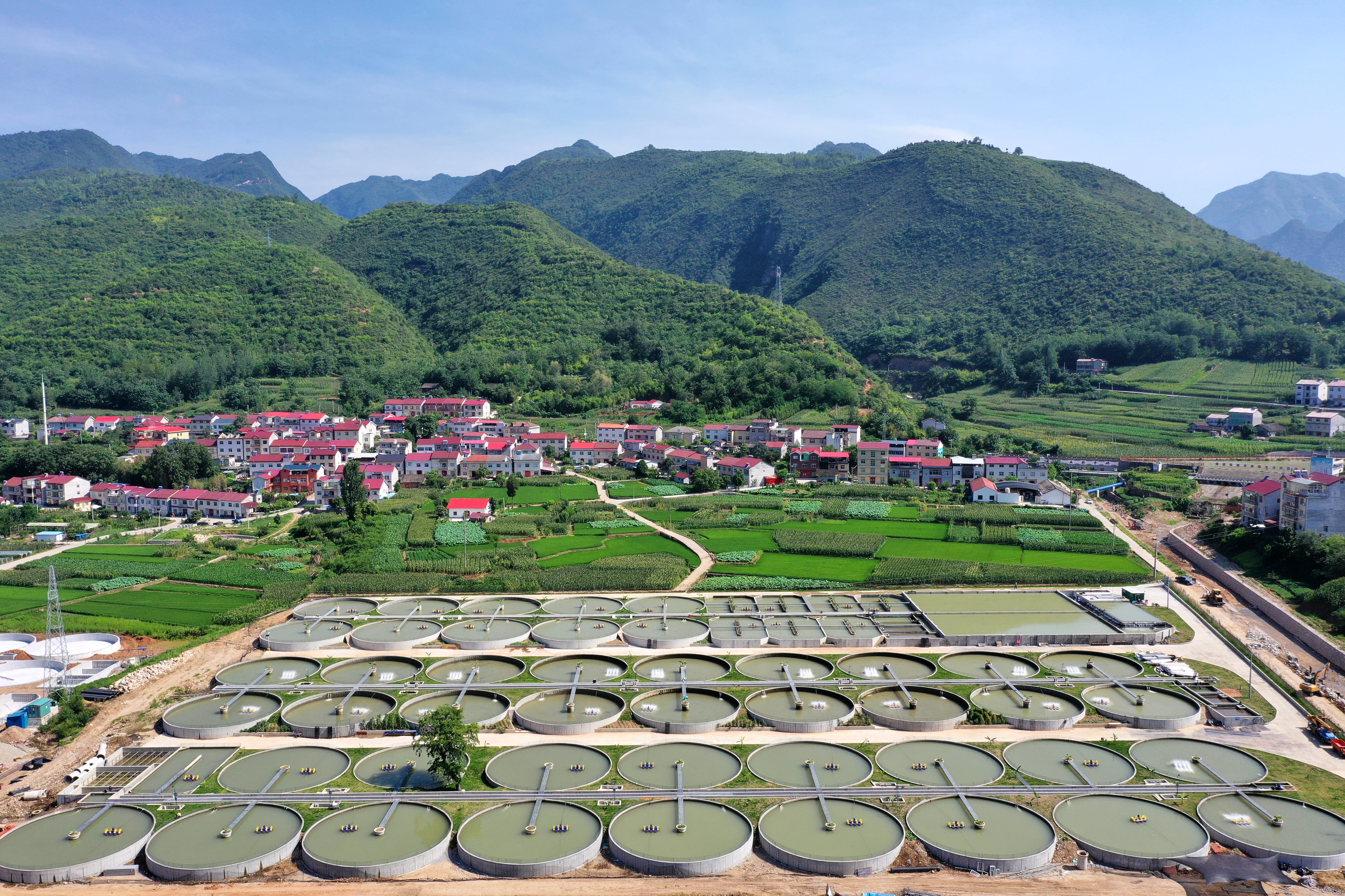 保康县马桥镇中坪村生态鲟鱼养殖场,数百个鱼塘一字排开。 邢忆星 摄