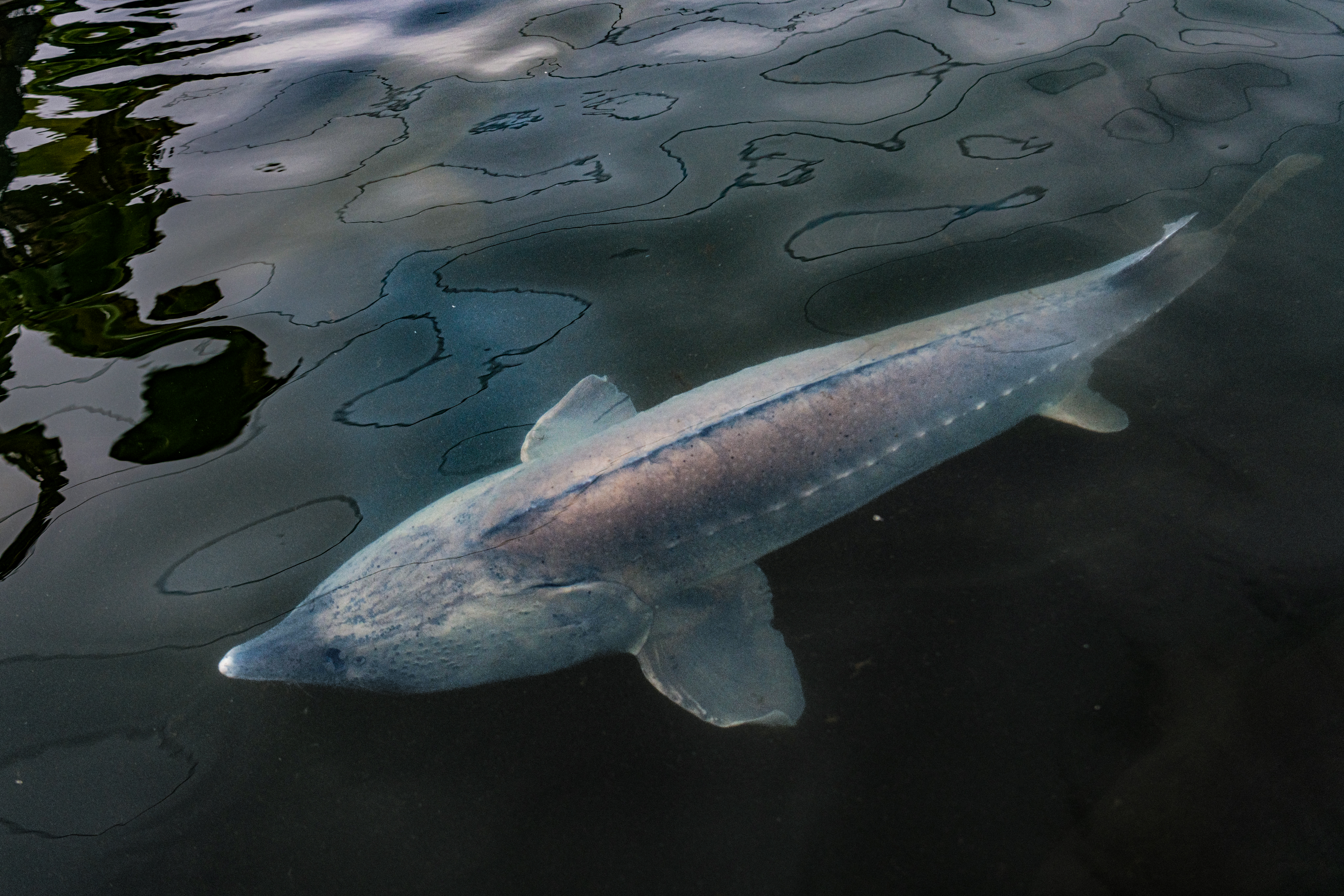 保康县马桥镇中坪村鲟鱼生态产业园,一尾鲟鱼在养殖区畅游。 吴吉云 摄