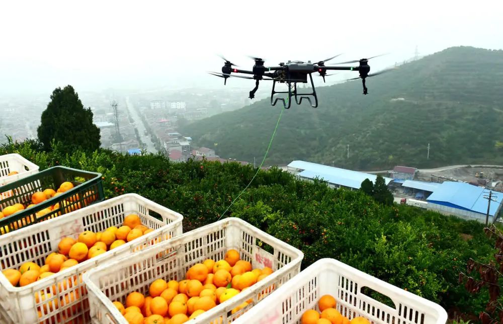 除了山间运输轨道,当地果农还将目光投向了天空。“新农人”郭正发是巡检镇让柑橘“坐飞机”的第一人。“以前要请20多人摘橘子,再请5人背下山,40多天才能完成采摘,现在只要10人,还能提前十几天采完!”