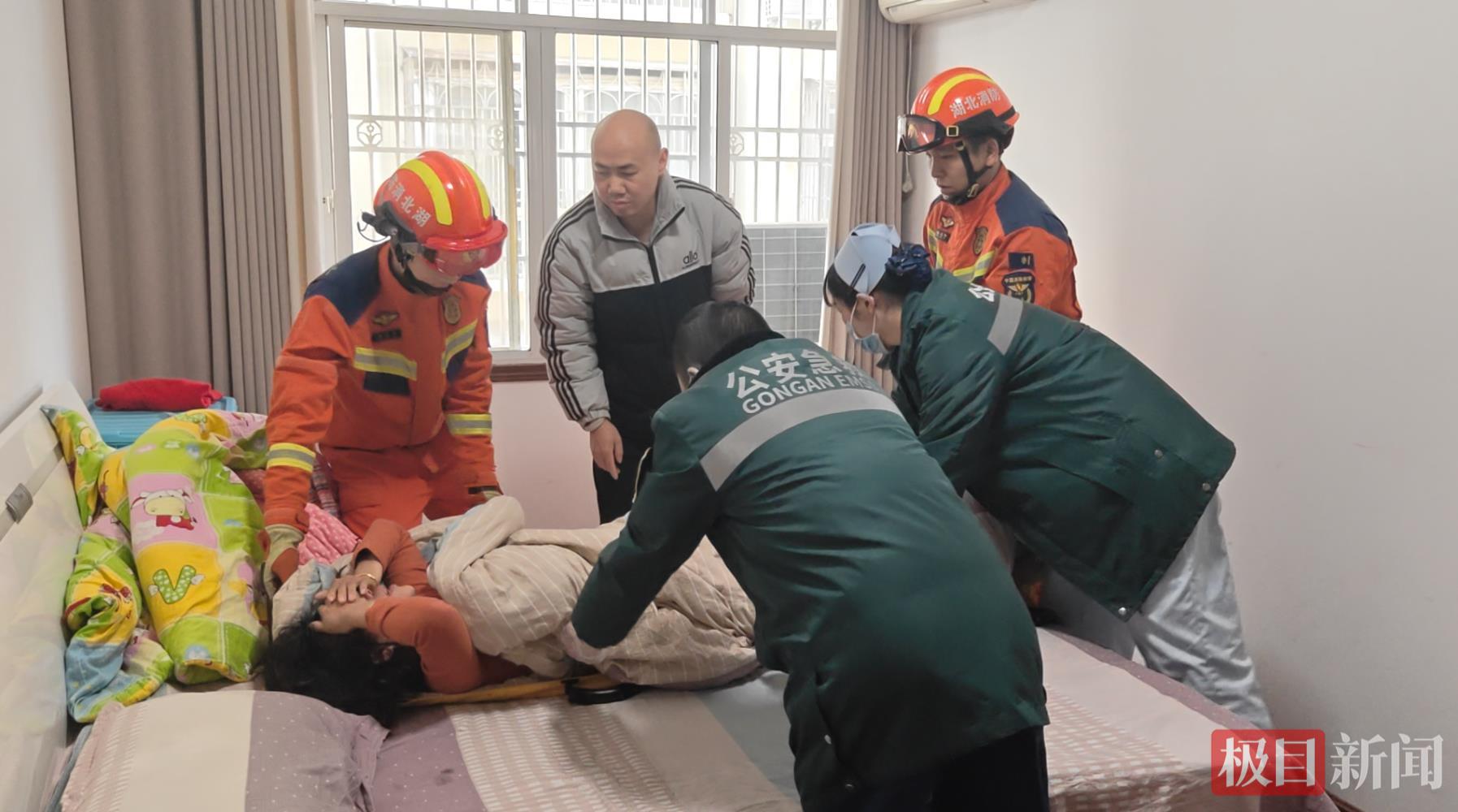 1月16日早上8时07分许,湖北荆州公安县孱陵大道消防救援站接到119指挥中心调度:辖区某居民楼内,一名女子独自在家时突发头晕、四肢无力,已无法自主行动,且房门从内部反锁,家属在外无法进入,多次呼喊无应答。