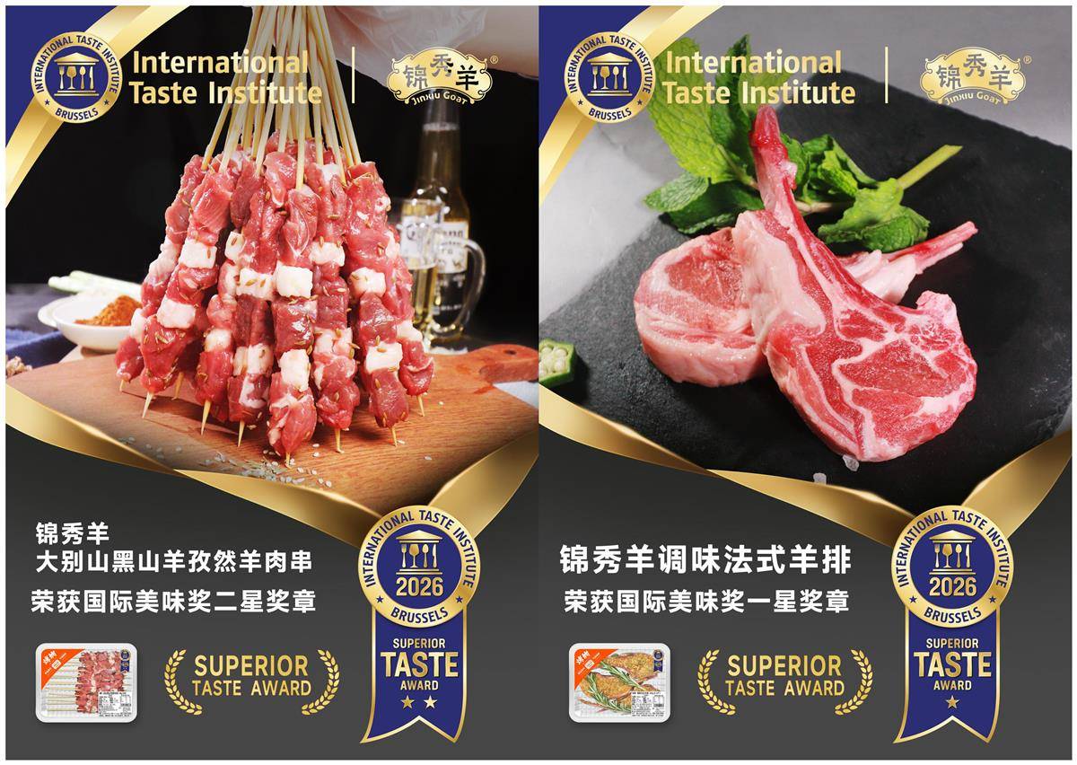 湖北日报讯(记者刘毅、通讯员杜俊辉、陈钦)日前,有食品界“奥斯卡”之称的2026年度“国际美味奖”(Superior Taste Award)揭晓,由湖北锦秀智慧农业股份有限公司选送的“锦秀羊”牌冰鲜孜然羊肉串和冰鲜调味法式羊排从数千款参评产品中脱颖而出,分获两星和一星奖章,标志着大别山黑山羊鲜羊肉制品正式获得全球权威机构认可。