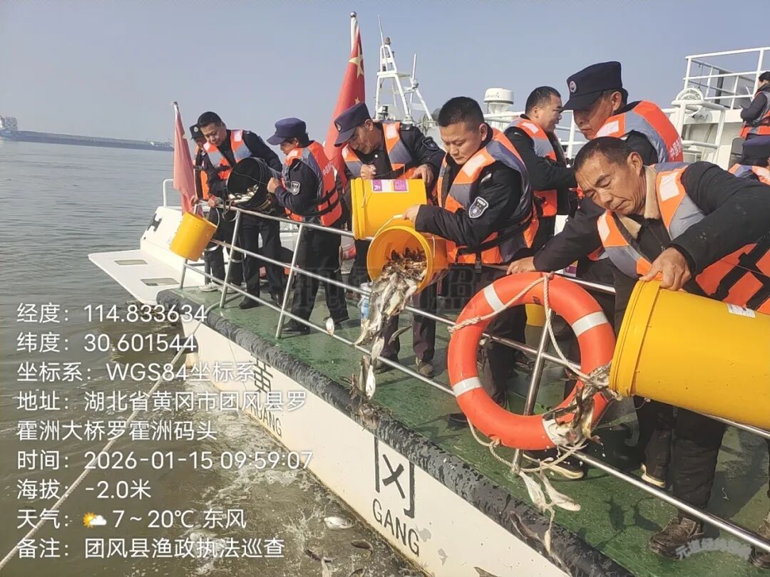 湖北日报客户端讯(通讯员王真)1月15日,长江团风段水域波光粼粼,一场特殊的增殖放流活动在此举行。两名违法行为人,在团风县农业农村局、公安局、检察院、司法局的联合监督下,将自行购置的4560尾鲢鱼、草鱼等本地适生鱼苗缓缓投入江中,以实际行动弥补生态损害,完成了从“生态破坏者”到“生态修复者”的转变。