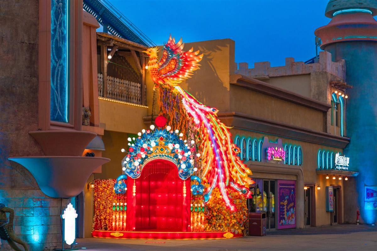 为迎接此次灯会,奇幻谷将开放夜场至3月8日,活动期间,游客不仅能欣赏璀璨灯海,还能体验百余项游乐项目和精彩演艺。届时,游客走进奇幻谷,可以欣赏到华美溢彩的各式灯组深入挖掘中国传统文化,仿佛步入祥瑞之境。伴随悠扬的凤鸣之音,8米高的“凤凰于飞”灯组跃然眼前,其闪耀光辉的尾羽化作瀑布花海与鎏金凤冠,寓意“凤凰涅槃,花开富贵”,是热门的拍照打卡互动点位;“龙凤呈祥”灯组整体长达40米,祥云环绕中,4条巨龙龙吟盘柱、中间彩凤巨凤展翅,壮观造型展现传统技艺、祥瑞之美,凤凰展翅间,更有五彩光芒流转,呈现“云蒸霞蔚,腾龙舞凤”的视觉盛宴。