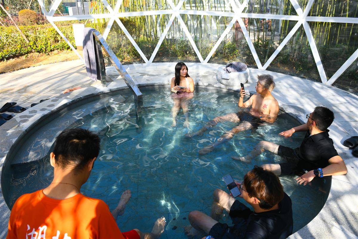 游客在温泉养心谷泡汤(湖北日报通讯员陈红菊)